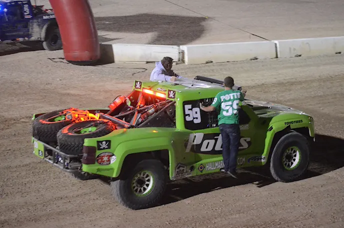 The starting lineup for qualifying was announced with four groups of racers. The first group was made up of the two Class 1 trucks, then each of the next three groups are trophy trucks. In the second Trophy Truck group was the Herbst, the last group of Trophy Trucks to qualify include Bryce Menzies, Robby Gordon, and qualifying last was Rob MacCachren.