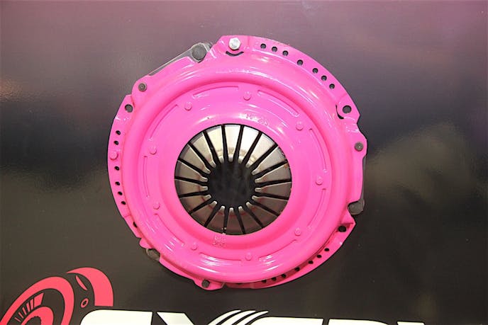 The Stage One kit includes an organic disc using Exedy’s proprietary Ultra-Fiber material. “It’s an organic type, but not in the traditional sense,” said Kaminski. “It has a lot of copper and doesn’t have a steel-backed lining, so it has a very high burst strength and very low weight. The material is very resilient, to where if it gets heated up and cools back down, it will not lose any of its grippiness.”