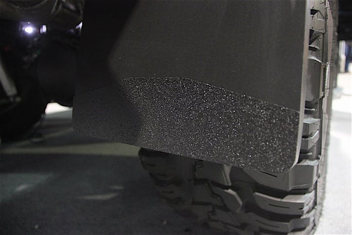 Finally, the mud flaps were an accessory that many a truck owner can get behind. “These are our Kickback-style mud flaps,” said Hackmann. “The mud flaps attach to a bracket with a 1.5-inch offset to pull the mud flap over most of the tire. We make them in 12 or 14-inch-wide versions, so they’re well-suited to oversized off-road tires like all-terrains or mud-terrains.”