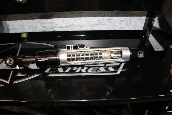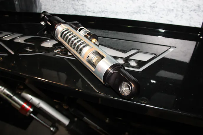 Most steering stabilizers, Rubicon’s Darryl Sanford shares, don’t feature an internal spring design, explaining that “on a nitrogen-charged stabilizer, the nitrogen charge will expand the actual shaft itself, so as you’re going straight down the road, as you let go of the steering wheel, the shock is going to expand on itself. With the internal spring, it neutralizes that force as you’re going straight and aids in returning to center. As the spring collapses on itself, it’s going to want to expand until it gets to its natural resting spot, and that spot is when it’s going straight down the road.”
