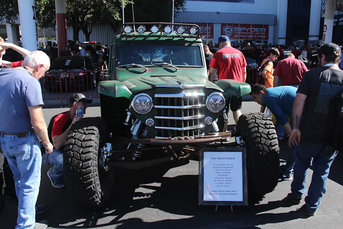 “The Willys belongs to Michael Orback, owner of Outlaw Speed Shop,” said Frank. “In 2016, he saw our ’41 Chevy pickup done on our sand truck chassis and loved it. Michael reached out to us and said he wanted a similar style of build done for a Willys pickup he owned. He lengthened and widened the body and raised the front fenders by 10-inches, then delivered it to us in September of last year.”