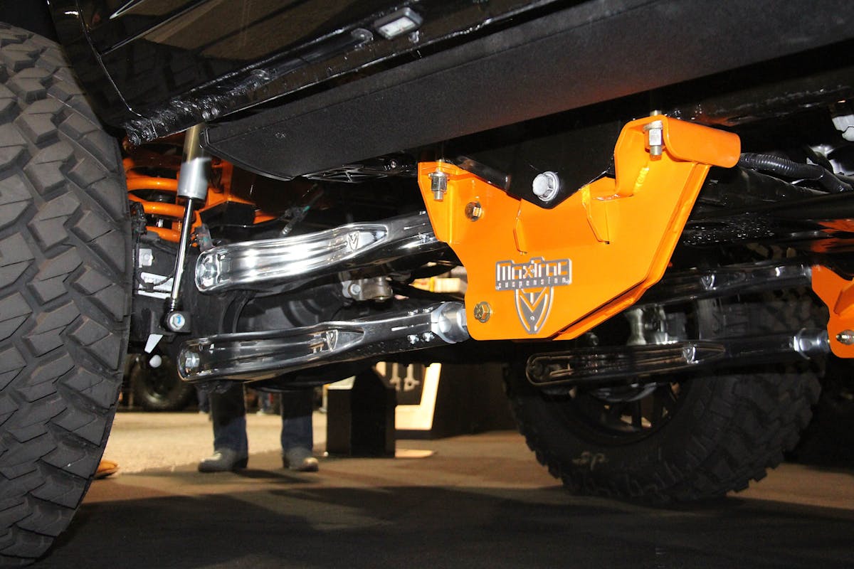 Also in the MaxTrac booth was the company’s latest array of JL parts for the new Jeep Wrangler. A three-inch lift kit is new, and offers a dual-rate spring to deal with both off-roading and on-road driving very well. Suspension arms for the axles are made of 1.75-inch-diameter DOM tubing, and use the factory bushing to maintain quiet operation. Along with brake line and bump stop extensions, the kit represents a full bundle to address all of the changes that come with lifting a vehicle, and won’t leave the owner high and dry.