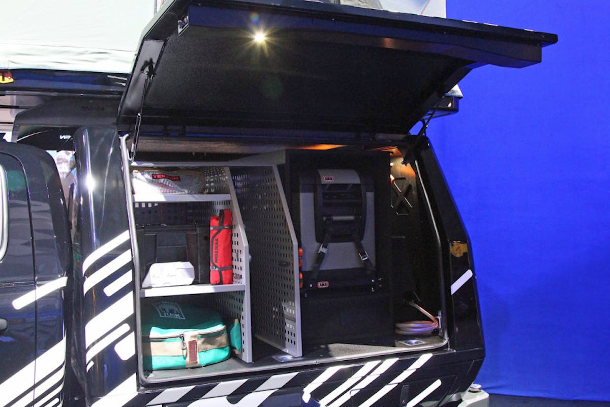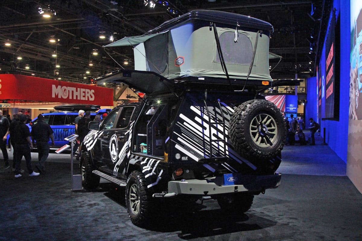 Eager to learn more about the overlander on display, Rory Connell from Advance Accessory Concepts (AAC) walked us around the team’s one-off Ford Ranger XLT. Connell explains that while AAC is better known for its 12-volt power distribution modules, it has recently begun distributing vehicle armor products from a company in Portugal. While we were unfamiliar with Portuguese manufacturer AFN, Connell tells us that the brand first made a name for itself by providing armored security solutions to armed forces and the United Nations.