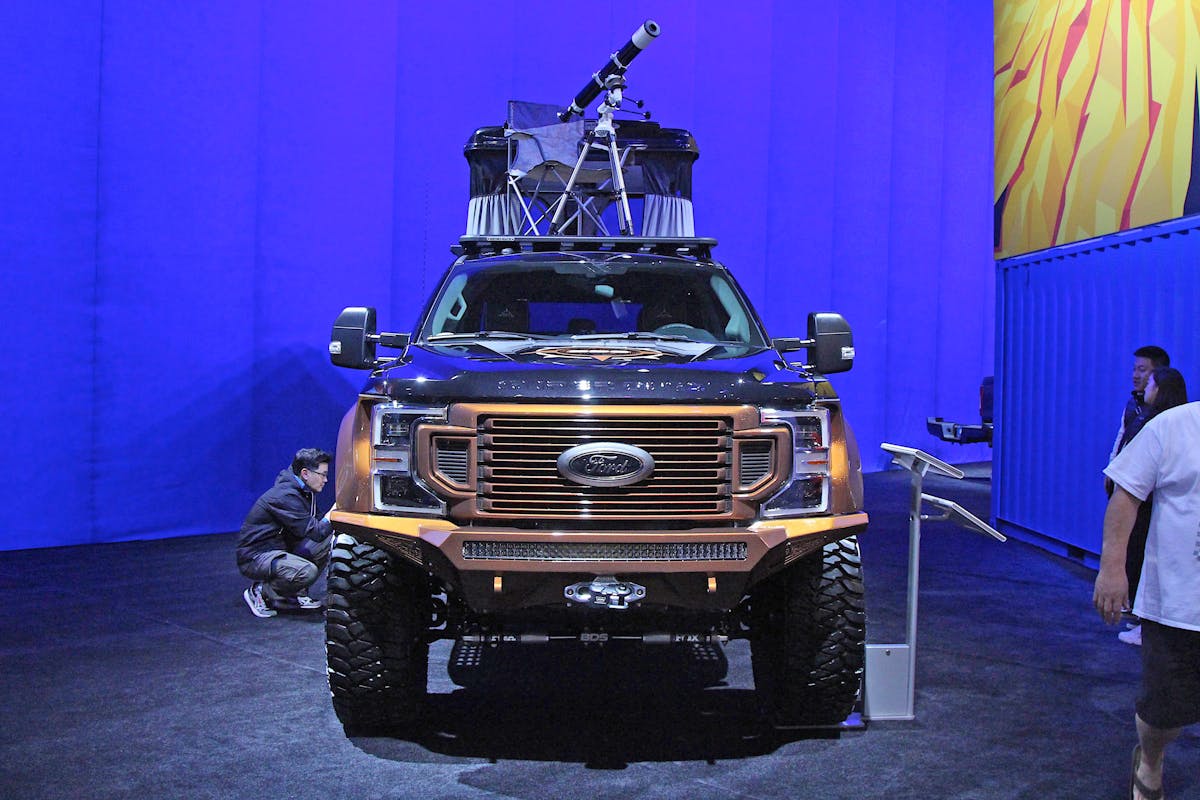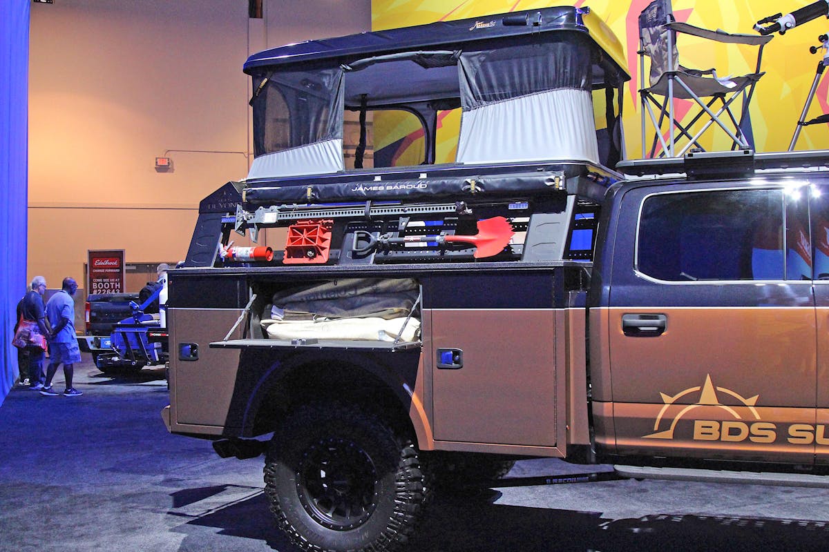 Overlanding builds took over the 2019 SEMA Show. Reflecting on the growing trend of enthusiasts who love to mix camping with off-roading, aftermarket companies wanted to show what they have cooking for the market segment. For their part, BDS Suspension had a build in the Ford booth. It was a 2020 F-350 called “Go Beyond.”
