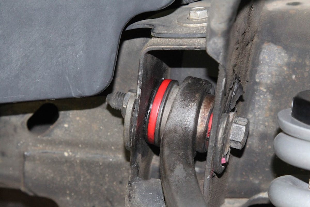As far as greasing goes, Martin says, “The biggest note I would give anyone when installing polyurethane [bushings] is to grease it correctly, right at the beginning, before installing. Grease the components, grease the bushings, grease the sleeves…”