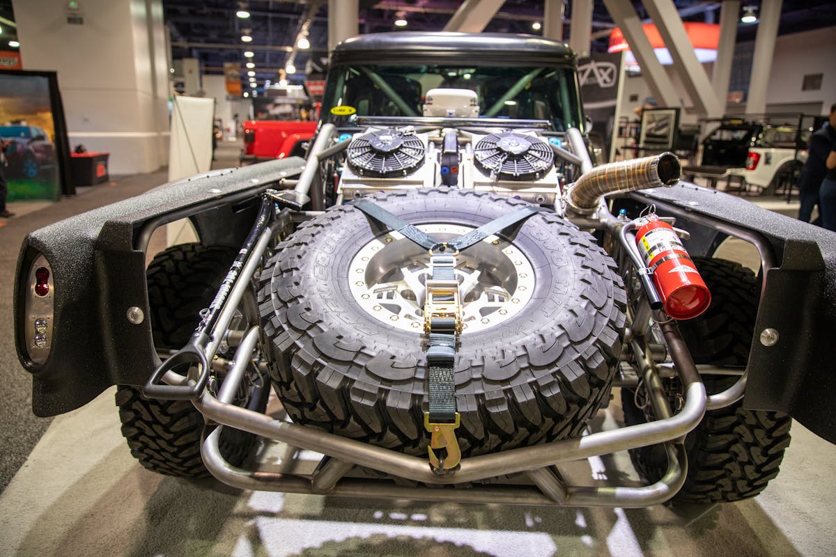 Also included in the build was a 4X4 sPod switch panel, Steel-It Coatings chassis paint, XS Power batteries, LMC Truck glass and trim parts, Steele Racing Products A/C unit, Ticon Industries exhaust tubing, Oberg Filters transmission filter, Dynamic Motorsports torque converter, Quick Latch Distribution hood latches, Borla muffler, Mastercraft Safety limit straps and tie-downs, Shovel-Tec Shovel, Go-Jak Setup by Zendex Tool Corporation/Go-Jak, Camburg Engineering suspension parts, radio equipment by PCI Radios, Premier Street Rod parts and manufacturing body shell, Fuel Safe fuel cell and dry-break, TCS Performance axles, and Stony Automotive Engineering transmission.