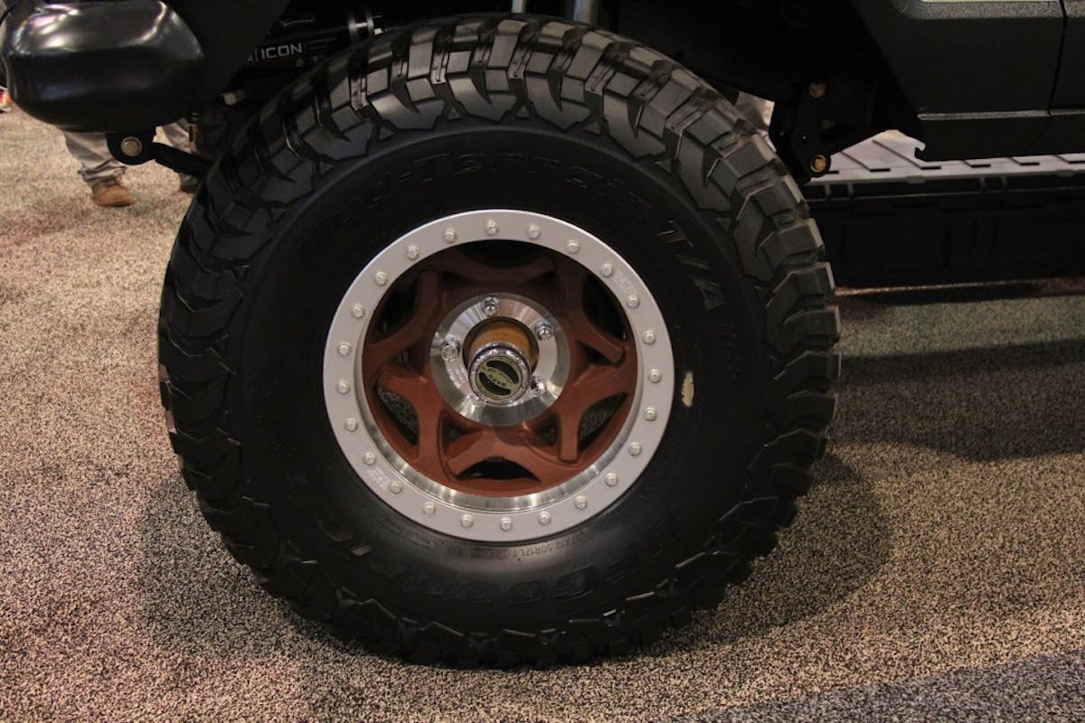 Among the highlights of the creation are a GM LS engine swap, Atlas leaf springs, and Currie axles. 37-inch BF Goodrich mud terrains wrapped around Walker Evans Racing beadlocks keep the ride moving through the muck. Classic Warn hubs clash appropriately with the remote reservoir Icon Vehicle Dynamics shocks.