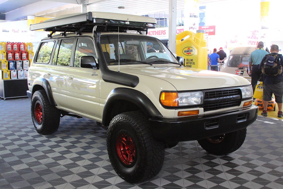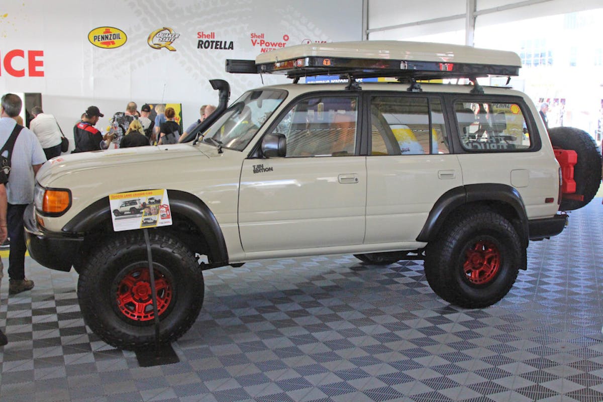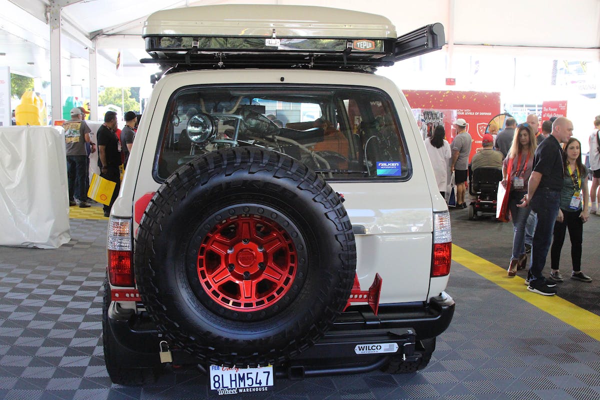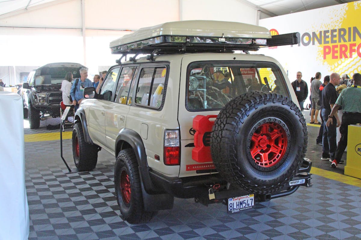 As was a common motif for off-road builds at this year’s show, Neil went for an overlanding theme on the Land Cruiser. “We worked with Eibach to supply a three-inch lift kit, which was a prototype kit,” said Neil. “The kit makes the SUV drive like a million bucks, even with the bigger 35-inch Falken Wildpeak tires. Eibach made the sway bars as well. Helping that is the Delta suspension arms, along with new steering and Panhard bar.”