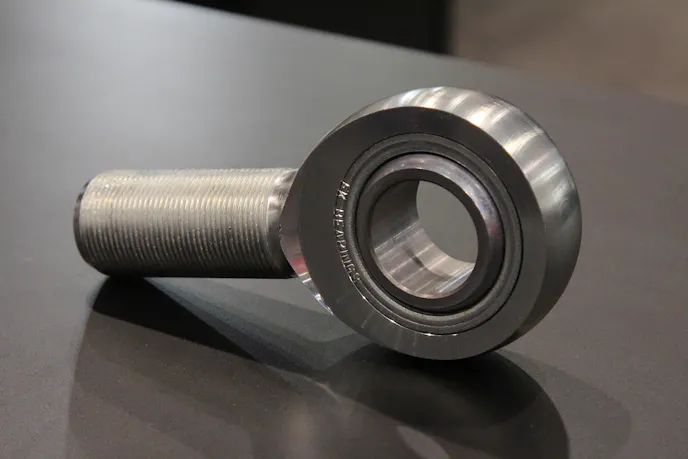 Without a moment to waste, Langley took us over to a massive rod end that goes by the name of JMX24T. He explains that this precision-cut slab of alloy comes directly from the brand’s Ultra4 series of products, and is about as ultra-high-strength as it gets. Measuring 1.5-inch by 1.5-inch with a 12-thread and 1.5-inch bore on the ball, these puppies are made 100-percent out of alloy steel on the body, race, and ball for unparalleled longevity and performance.