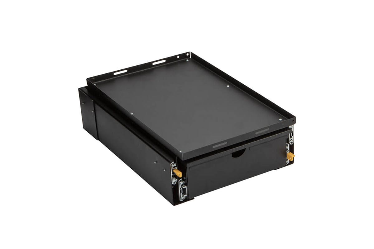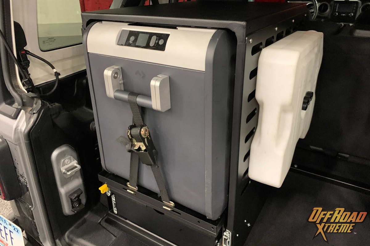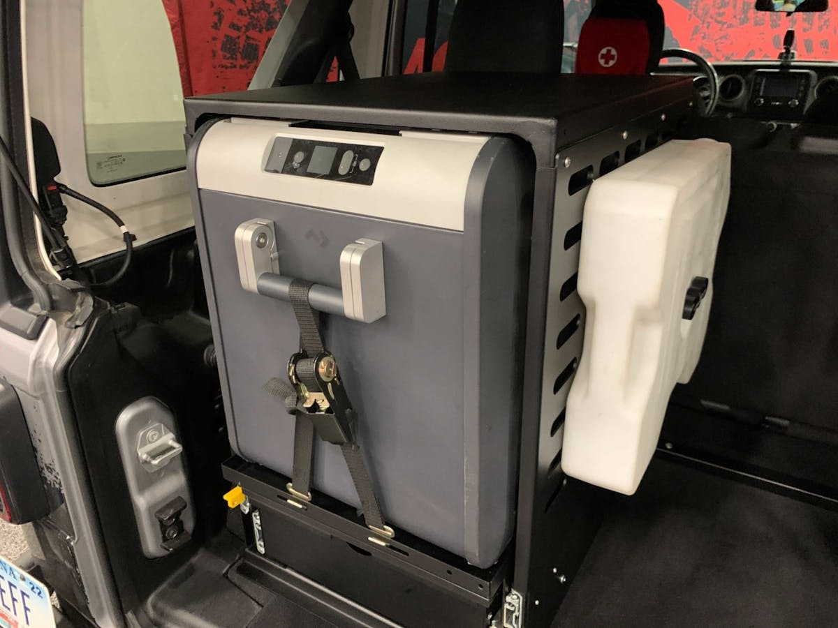 This compact trail kitchen system fits in the back of any Jeep Wrangler, similar-sized SUV, or larger. The modular design means you can add on accessories, including a fold-out counter or Molle grid, for the perfect tailgating or off-road adventure. Top tray supports most popular fridge/freezers.