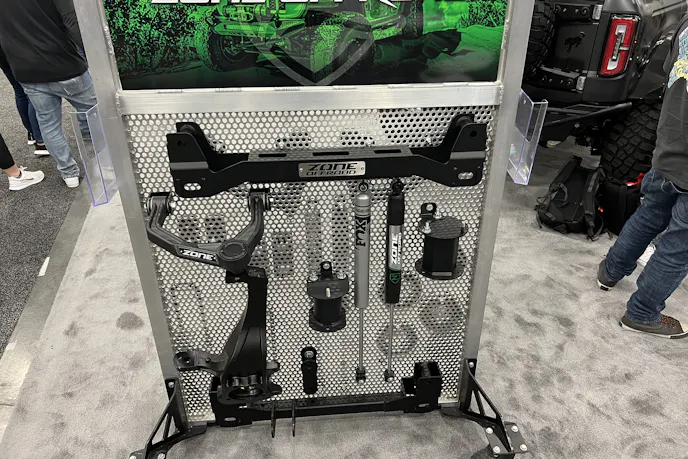 One thing we like to do while scouring the halls of the SEMA Show, is to talk shop and find out what is new with the shock manufacturers. We know that Fox Factory is constantly innovating, so we got their Marketing Manager, Dane Garvin, to share a little bit about what he is excited about and that is the FOX Performance Series Shocks and Factory Race Series line. The shock talk got us amped up and ready to rock and even more so when we spotted the KOH Edition Ford Bronco starring as the prime vehicle booth display.