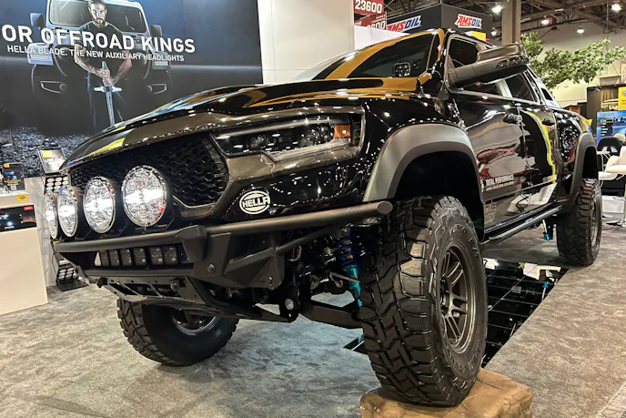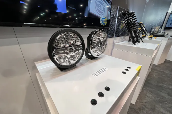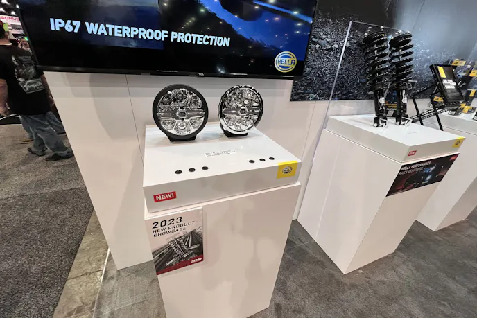 When you come across a global automotive parts supplier like Hella at the SEMA Show, you know they will have something super cool and high-tech on display. What we found were the Hella Valuefit Blade LED Lights. These are actually very slim profile auxiliary high beam headlamps that offer dual-use on-road and off-road lighting modes.