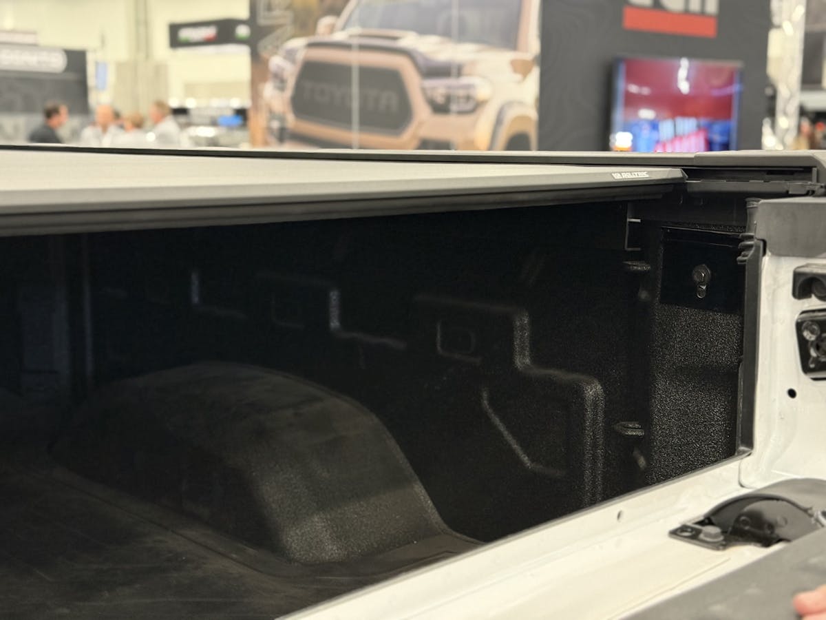 EGR’s slick RollTrac electric retractable bed cover is available for several vehicle models, and we got to see the cover installed on a GMC Sierra Denali pickup. It’s an aluminum bed cover with a 700-pound weight rating. It uses factory mounting points, which removes C-clamps from the mounting equation. For those of us who travel off the paved road, it’s important to note that the RollTrac electric retractable bed cover is engineered to withstand the abuse of off-roading. Another notable feature, from the off-road perspective, is the cover’s ability to retract without trapping dust and debris.
