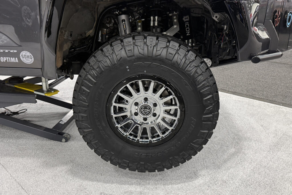 Stepping up to 38×11.50 Nitto tires on custom-chromed ICON Recon Pro wheels meant the stock Toyota braking system was no longer up to the task. Wilwood stepped in with a six-piston front brake package engineered specifically for this vehicle, giving the Tundra the stopping power its long-travel capability demands.