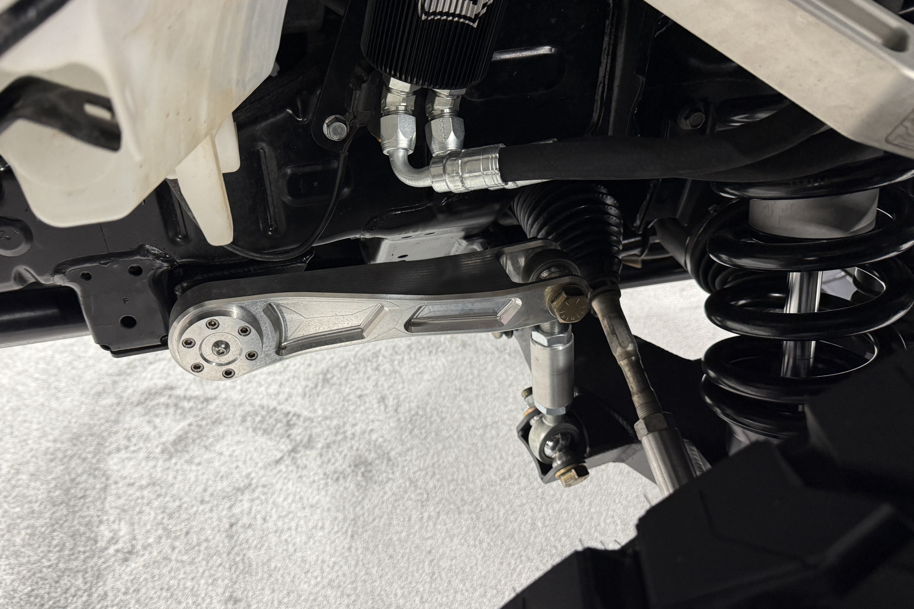 The centerpiece of the truck is ICON’s new 3.5-inch-over, long-travel suspension system. A set of billet aluminum upper control arms features the brand’s latest Delta Joint Pro with double-adjusters, offering fast and precise alignment capability. Down below, ICON developed a new style of lower control arm bushing designed specifically to eliminate the squeaks, pops, and binding common with uniballs or polyurethane alternatives. The result is a quiet, highly compliant front end that cycles an impressive 13 inches of wheel travel.