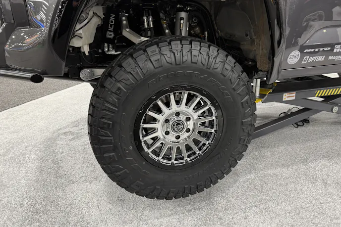 Stepping up to 38×11.50 Nitto tires on custom-chromed ICON Recon Pro wheels meant the stock Toyota braking system was no longer up to the task. Wilwood stepped in with a six-piston front brake package engineered specifically for this vehicle, giving the Tundra the stopping power its long-travel capability demands.