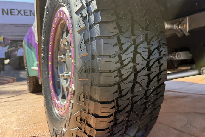 The Recon itself is one of Jeep’s most important new vehicles, blending Wrangler-like cues with a dedicated EV platform engineered for serious trail work. Spy shots and early displays, including Nexen’s SEMA showcase, reveal Roadian ATXs in 265/70R18 on production-intent vehicles and larger 17-inch sizes on pre-production mules. Seeing a tire that started in the aftermarket now treated as a core part of Jeep’s factory package underscores how far Nexen has advanced in the truck/SUV space.