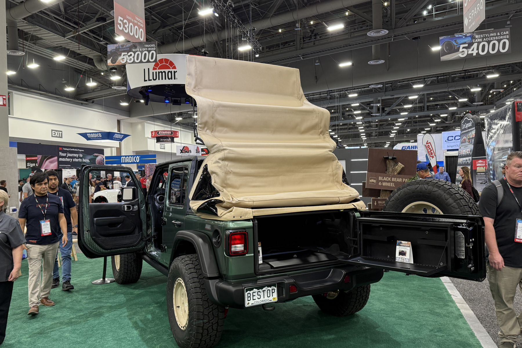 At SEMA, Bestop didn’t just showcase technology — it brought color to the conversation. Four new eTop shades made their debut: Merlot, Champagne, Admiral, and Smoke.