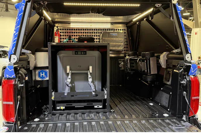 Developing the Tacoma H2-Overlander was a formidable challenge. TRD engineering teams in California and North Carolina collaborated intensively, relying on advanced CAD models, 3D-printed guides, and a cross-functional approach to reimagine a gasoline-powered Tacoma as a fully integrated hydrogen 4WD concept in a matter of months. “Time was our greatest challenge,” Cauthen said. “The question became: ‘What can we do on a tight timeline to be prepared for SEMA with a fully integrated vehicle that used to run on gasoline and now runs on hydrogen?’” The accelerated development cycle led to several TRD firsts, including the water recovery system and a TRD-tailored roboformed tailgate created with Toyota Motor North America Stamping.