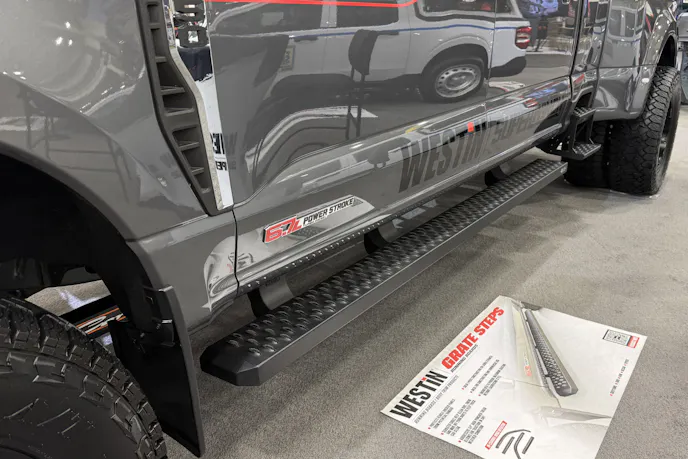 Leading the lineup is a fully outfitted 2025 Ford F-350 Super Duty, built to showcase the absolute breadth of Westin and Superwinch’s newest offerings. The truck wears Westin’s HDX Bandit winch bumper mated to a Superwinch Tiger Shark 18,000SR winch, backed by HDX 8-Force LED lighting for improved visibility. Several new prototype step solutions—including HDX and Grate Step models—combine with matte and smoked in-channel wind deflectors to enhance both accessibility and airflow management.