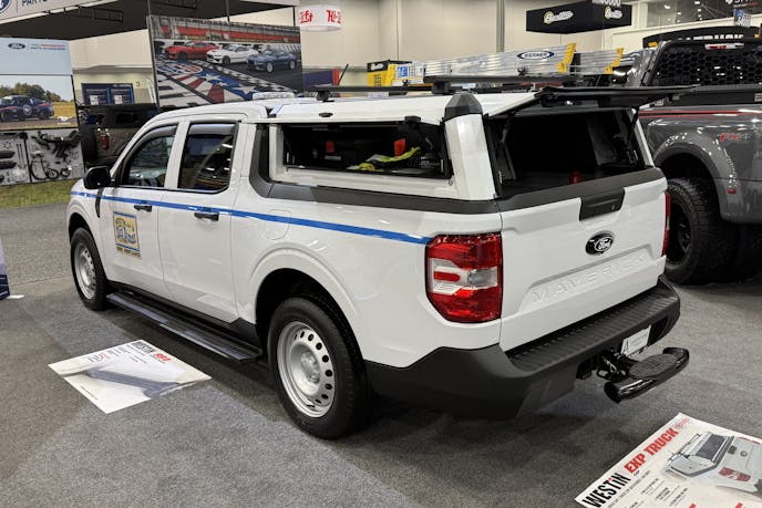 Though smaller in size, the 2025 Ford Maverick build is packed with purpose. Designed with fleet and light-duty service in mind, it features Westin’s EXP low-top truck cap and matching toolbox bottom, supplemented by EXP crossbars in 24-inch and 57-inch lengths for versatile cargo handling.