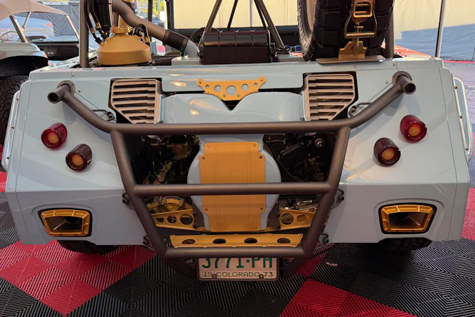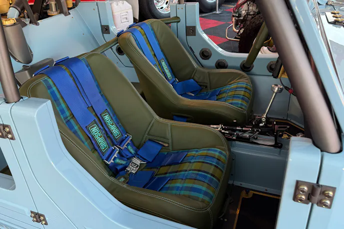 Inside, the vehicle leans more toward function than flash, with exposed tubing, race-style seating, and the purposeful simplicity you’d expect from a machine designed to hammer dunes rather than polish trophies. Still, the craftsmanship remains unmistakable. Every bracket, seam, and stitch reflects the Jones family’s guiding philosophy: build it as though Porsche itself had decided the Thing deserved a hardcore off-road counterpart to the 911.