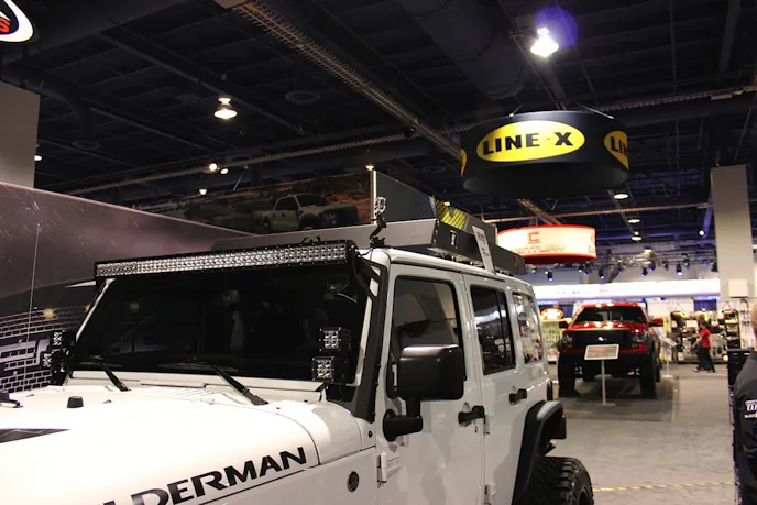 To get some additional lighting up front and to the side of your off roader, Fab Fours showcased their new roof-rack system which McGuire summarized by saying, “We are releasing our new universal roof-rack that is offered in various sizes to fit a wide variety of trucks and Jeep JKs. It is made for the Rigid light bars on the front as well as dualies on the side and can be broken down to ship via UPS to save the customer money.”