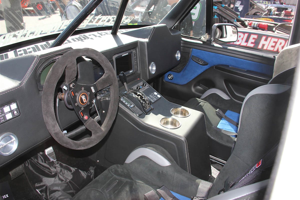 The interior of the Bronco is packed with amazing partners as well. From the custom interior Beard seats, M&M Fabwerx tin work, Racepak dash, communication system, custom shifter, full luxury interior by Ish formally of West Coast Customs, and Bentley carpet.