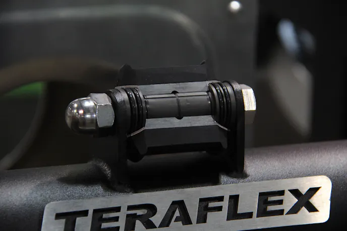 A few of the key components that were touched upon during our walk-around were the brand’s long-arm suspension kit, TeraFlex-exclusive Falcon shocks, twin-piston braking system, sharp alloy rollers, and the all-new Alpine IR bushing setup. Being that the latter of the lot ended-up as the more unique duo of offerings from TeraFlex, we decided to focus on the brand’s bushings and wheels.