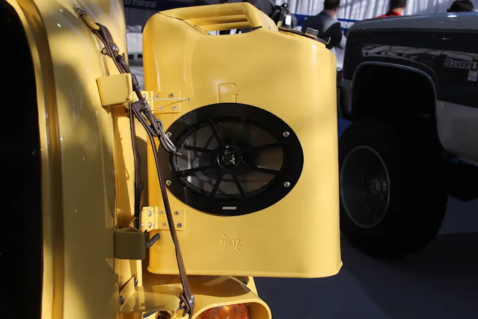 The stereo received a revamp courtesy of Kicker, and included four six-inch speakers, two 6×9-inch speakers, two eight-inch subwoofers, three amplifiers, two flatscreen TVs, a touchscreen navigation system, reverse camera, a Sony PlayStation 4, and last but not least, a DirecTV satellite dish. Another aspect of the refresh was a new paint job, done in-house using Glasurit Safari Yellow.