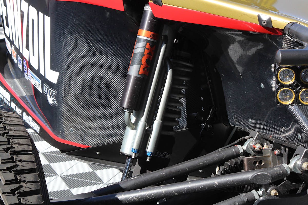 “The engines make about 800 horsepower, but that much power will break transmission on a locked diff, so drivers have to leave the diff open,” continued Rhys. “If they go through loaded corners or surfaces that have different grip textures, they’ll lose traction. Also, the tire and wheels tend to weigh about 100 pounds per corner, which is a lot of weight. We went to a manufacturer and asked if we could get a combo that weighs half that, and they worked with us to make one that weighs 68 pounds total.”