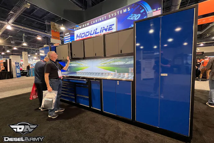 Whether you’re building your at-home garage space or looking at a new setup for all of your tools at your day job, Moduline Cabinets can do it. While perusing the Moduline booth at the 2021 SEMA show, I noticed they had cabinets in every size, every color, and every configuration imaginable. Naturally, I wanted to know more, so I swung in to take a look.