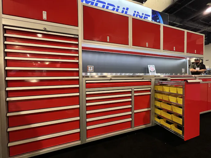 Per John, the biggest feature on the toolboxes is the quick draw latches. The individual latching mechanism keeps the drawers securely shut and keeps your tools safe. For more information about Moduline Cabinets, head on over to their website.