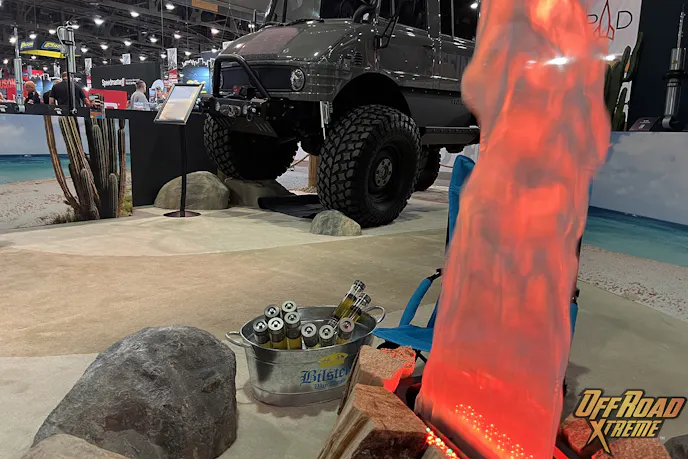 The Bilstein booth was vibing with a Unimog, mock campfire, and a bucket of frosty emulsion shocks. Bilstein was awarded a 2022 SEMA Data Excellence Award. If they care this much about the data, just think about how hard they work on the products.