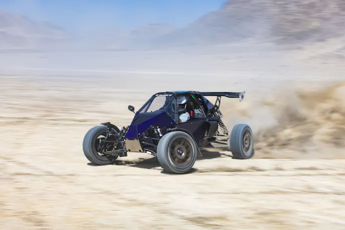 The Base model has a Hypercraft R300Si drive system that produces 150 horsepower and up to 220 lb-ft of torque at a maximum of 9,000 rpm. It has a top speed of 80 mph, a 0-60 mph acceleration time of 5.5 seconds, and a weight of 1,400 pounds. Additionally, it’s equipped with Fox 2.5 QS3 shocks. The starting price is $39,000.