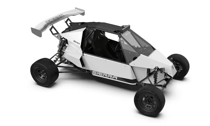 Sierra Cars has been around since 2018 and it has made a name for itself in the realm of ultra-performance vehicles. The company’s current lineup of race vehicles includes both gas and electric options. Its goal is to make high-performance racing-spec vehicles accessible to the every-day driver. There are three models of the electric, single-seat Echo. Each is rear-wheel drive, sports 12 inches of wheel travel, and 6 inches of ground clearance. All use a 18.6 kWh/450V battery pack.