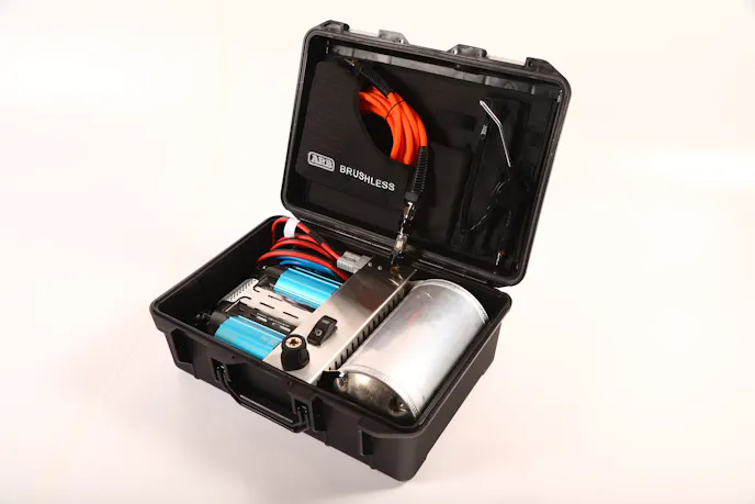 About: This new portable twin compressor uses brushless motors, which deliver up to 50 percent more air output. This system has active cooling fans that automatically activate to cool the motors, which enhances reliability and extends their lifespan. Additionally, protection against voltage and overload issues is handled by smart diagnostics. For ease of use, polarity correcting wiring allows the clamps to connect to either battery terminal.