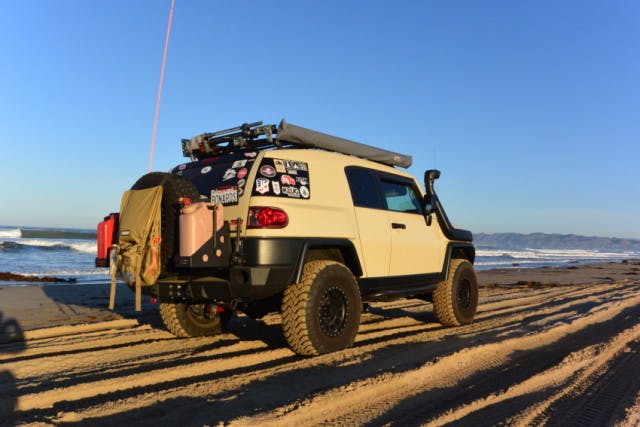 With a sand storm exterior paint color, Neil Leyesa’s 2010 Trail Teams edition FJ Cruiser looks right at home on the beach, or in the desert. And although this FJ might blend in when on the sand, its well-planned modifications make it stand out everywhere it goes. From top to bottom, Neil’s FJ is ready for anything.