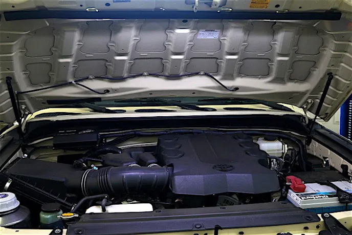 With Toyota’s reputation for reliability, there’s no need to make any changes to the engine or five-speed A750F automatic transmission on the truck. That doesn’t mean Neil has not paid any attention under the hood — he mounted an LED strip light behind the inner support that illuminates the engine compartment when the hood is raised.