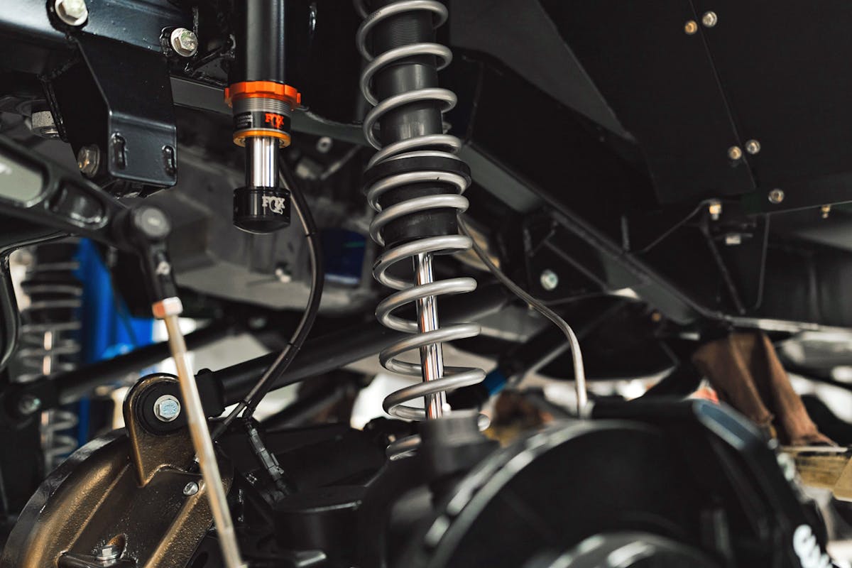 The General’s driveline consists of components that were hand-picked for their reliability and strength. Bolted to the 6.2-liter LS engine is a beefy Finish Line Transmissions Stage 5 4L65-E automatic transmission. This transmission is packed with upgraded and new parts, comes dyno-tested, and features a satin black powdercoated case, bellhousing, and tailhousing. Power is split to the axles via an Advance Adapters Atlas two-speed transfer case with a 3.8:1 low-range ratio. This gear-driven T-case includes a heat-treated one-piece aluminum case, helical-cut gears, and strong 8620 steel shafts.