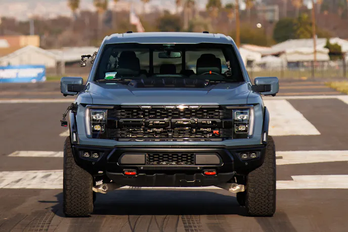 Polvoorde, perhaps a little too comfortable with the high-performance super truck, gets dusted in the first round. From there, Christopher uses the Raptor R to his full advantage. A hefty 5.2-liter supercharged V8 engine combined with the 10-speed automatic paddle-shifted transmission and trick driving modes turns this race into a no contest. The Raptor R churns up the asphalt and takes the next three rounds in a dominating show of brute power.
