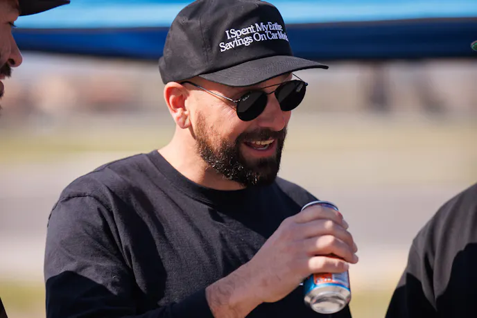 The cast of Hoonigans surveys each other to choose their winner. The more season gear heads choose the big heavy 700 horsepower truck. On the other side, the enthusiastic import fans are decidedly convinced their little Gazoo Racing Supra will take the stripe first.