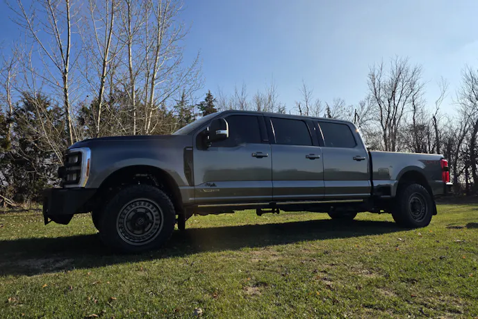 The Ford Super Duty already brings most of what a six-door truck needs before the first cut is made. It offers heavy-duty towing capability, durable running gear, and the kind of payload and long-haul confidence that make sense for families hauling people, gear, campers, boats, or trailers. Diesel-powered versions especially fit the concept well because torque, range, and durability become more important as vehicle size and load increase.