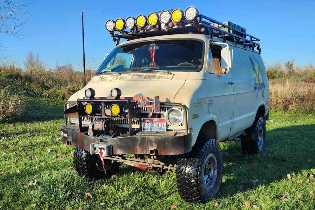 A few years ago, Eric Ammerman spotted this 1973 Dodge B200 Tradesman 4×4 van and tried to buy it, but the owner was not ready to sell. Eric says, “I have always been a fan of vans, especially 4×4 vans. I have come very close to buying Quigley Ford vans but never found the perfect one. When I saw pictures of this van a few years ago, it was all I could think about. I had to have it. It is a Mopar product, and my career and rigs have always been Jeeps. Finally, the owner agreed to sell it, and I jumped on it as fast as I could.” With that, the build of what Eric calls the “Smuggle Bus” began.