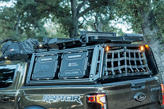 Other features in the Ranger Raptor’s overlanding arsenal include a two-person Front Runner Flip Pop Tent, a Cub Pack storage container (for hauling recovery gear), and a water tank. There is also a Dometic Patrol insulated ice chest, a CFX electric cooler/freezer, and a GO Hydration Water Jug. Finally, there’s a set of MaxTrax Traction Boards to assist with recoveries and a MORRFlate multi-tire inflation and deflation kit.