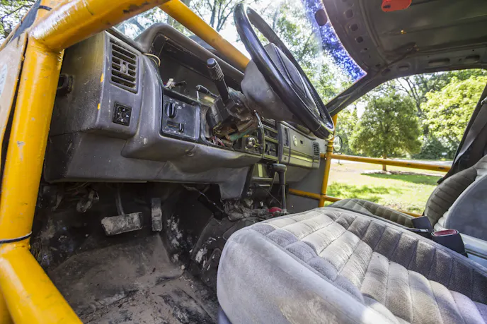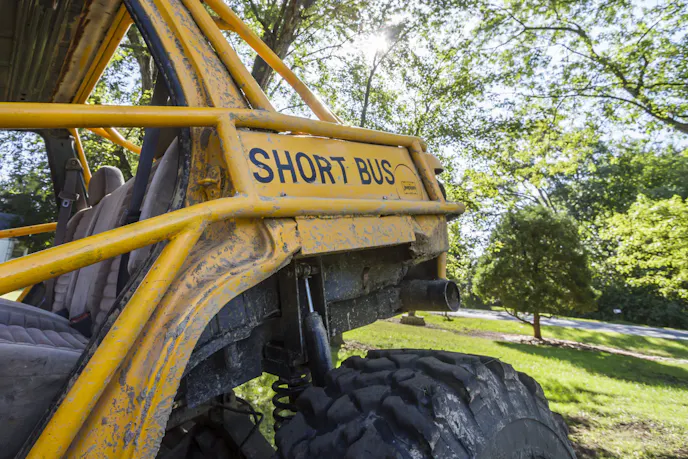 One-ton axles, long-arm suspension, a cage, and reinforced rocker panels were added. When we asked Ed why he chose a vehicle without a dedicated frame, he replied logically that, “I got it for $350, and that is what I had at the time.” The simplicity reminded us that sometimes, it’s just about what you have available; and that if you are willing to put in some blood, sweat, and tears, you can make just about anything work.