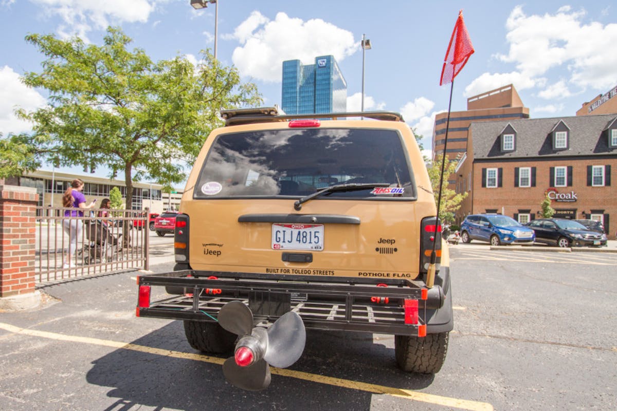If you have a Gatling gun and a couple of propellers on your Jeep, there is a pretty good chance that there is a story behind it. Larry does boat repair for a living, and when he sees something about his Jeep he doesn’t care for, then he just makes the effort to change it. His sister originally owned the Jeep and when she decided she was ready to get rid of it, Larry jumped at the chance.
