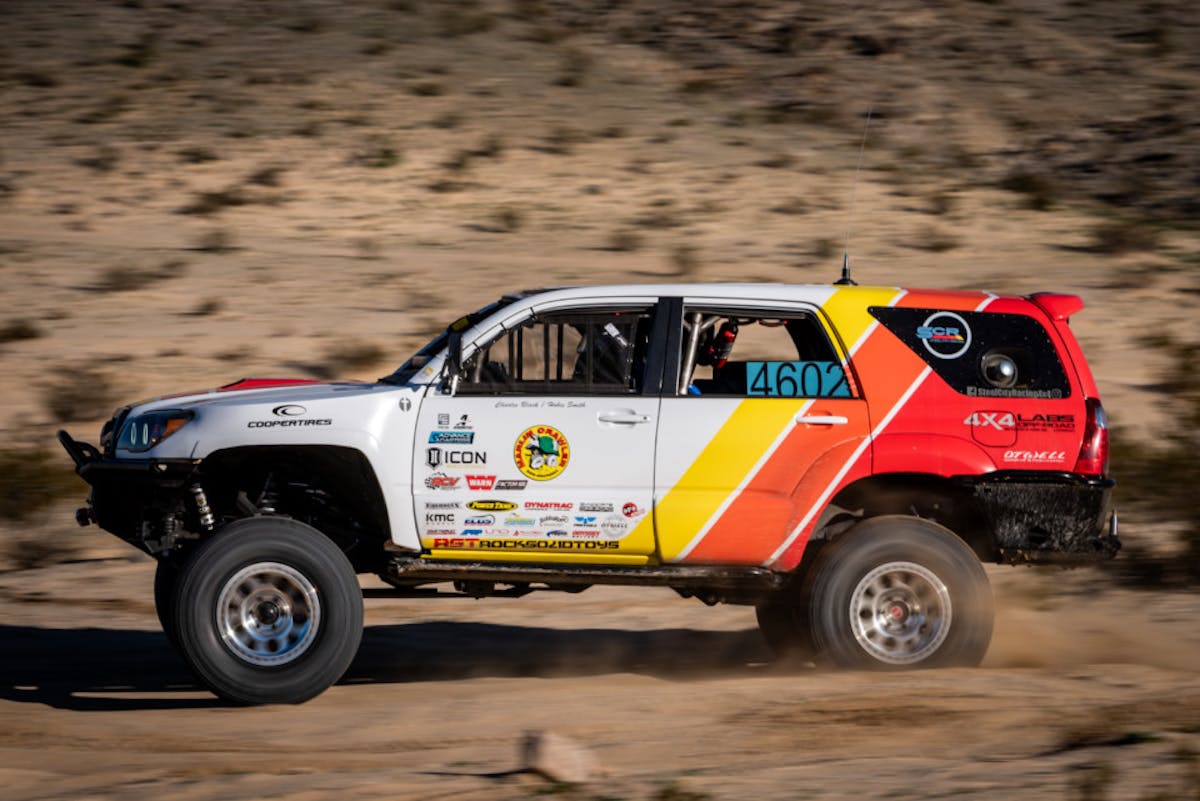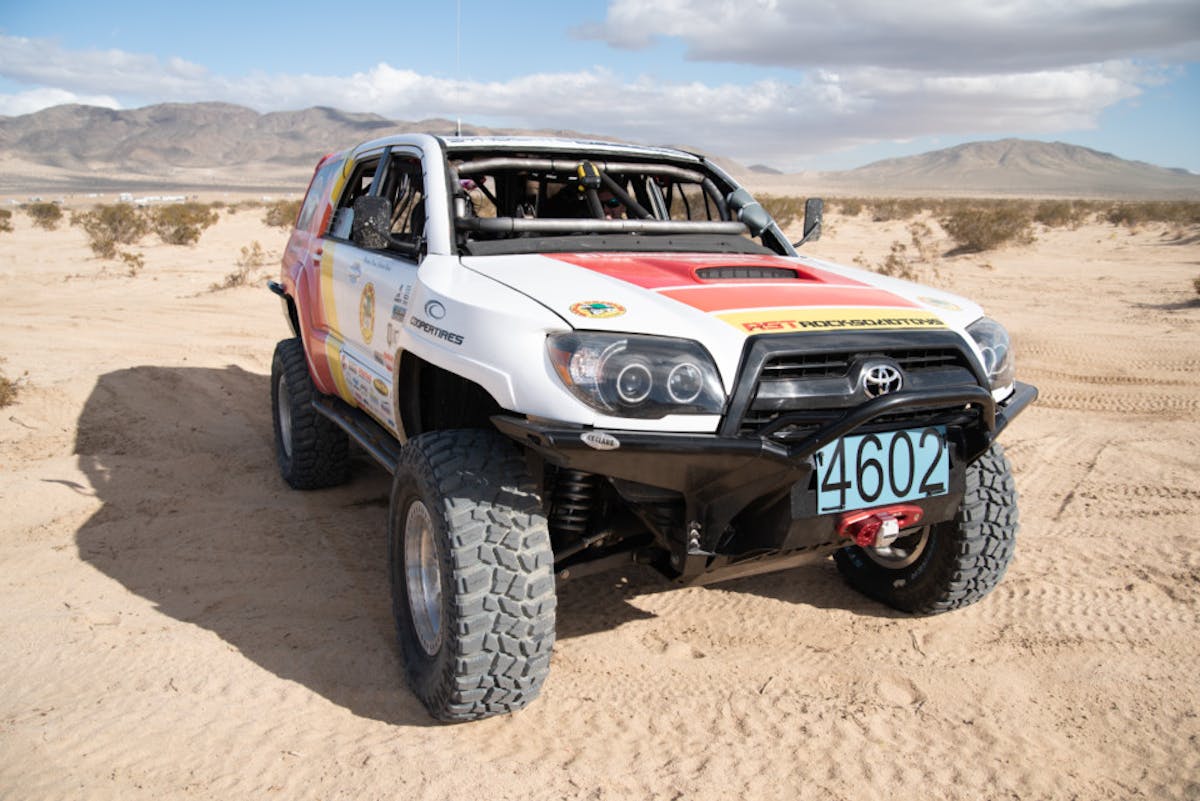 This vehicle caught my eye via Instagram before KOH Week had even started. Sporting graphics that brought me back to the days of “Ironman” Ivan Stewart ripping down the Baja Peninsula, checking out this 4Runner was high on my list. This was not the only Toyota on the lakebed that was sporting the familiar white, orange and yellow motif, but it was the only one that was racing that week.