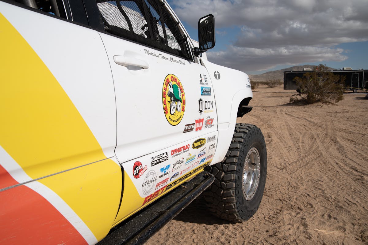 This vehicle caught my eye via Instagram before KOH Week had even started. Sporting graphics that brought me back to the days of “Ironman” Ivan Stewart ripping down the Baja Peninsula, checking out this 4Runner was high on my list. This was not the only Toyota on the lakebed that was sporting the familiar white, orange and yellow motif, but it was the only one that was racing that week.