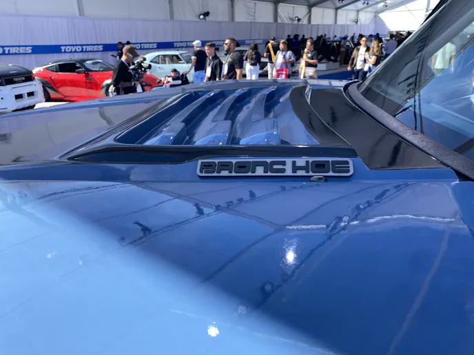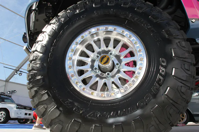 The Bronco rides on 40×12.5R17LT Toyo Open Country R/T tires wrapped around 9-inch-wide KMC forged Impact beadlock wheels.